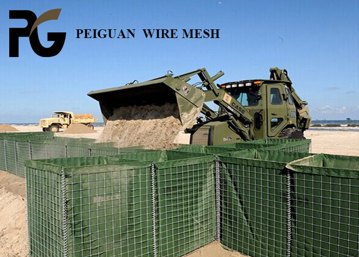 射撃練習場の構造のための軍のの鋼鉄障壁の壁は砂、地球、砂利、総計、荒石、煉瓦、良い沈殿物、等で満たすことができる1つの現代溶接されたgabionのバスケットである。そしてそれは、特にアフガニスタン円形、ライフルの弾丸、りゅう弾の破片、ロケット推進型の手投げ弾からの攻撃に対して耐圧防爆のために広く利用されているシリア、イラク、イラン、ヨルダン、等で使用される。それは都市でも洪水制御のために使用される、従ってもう一つの名前はの洪水制御の障壁である。
